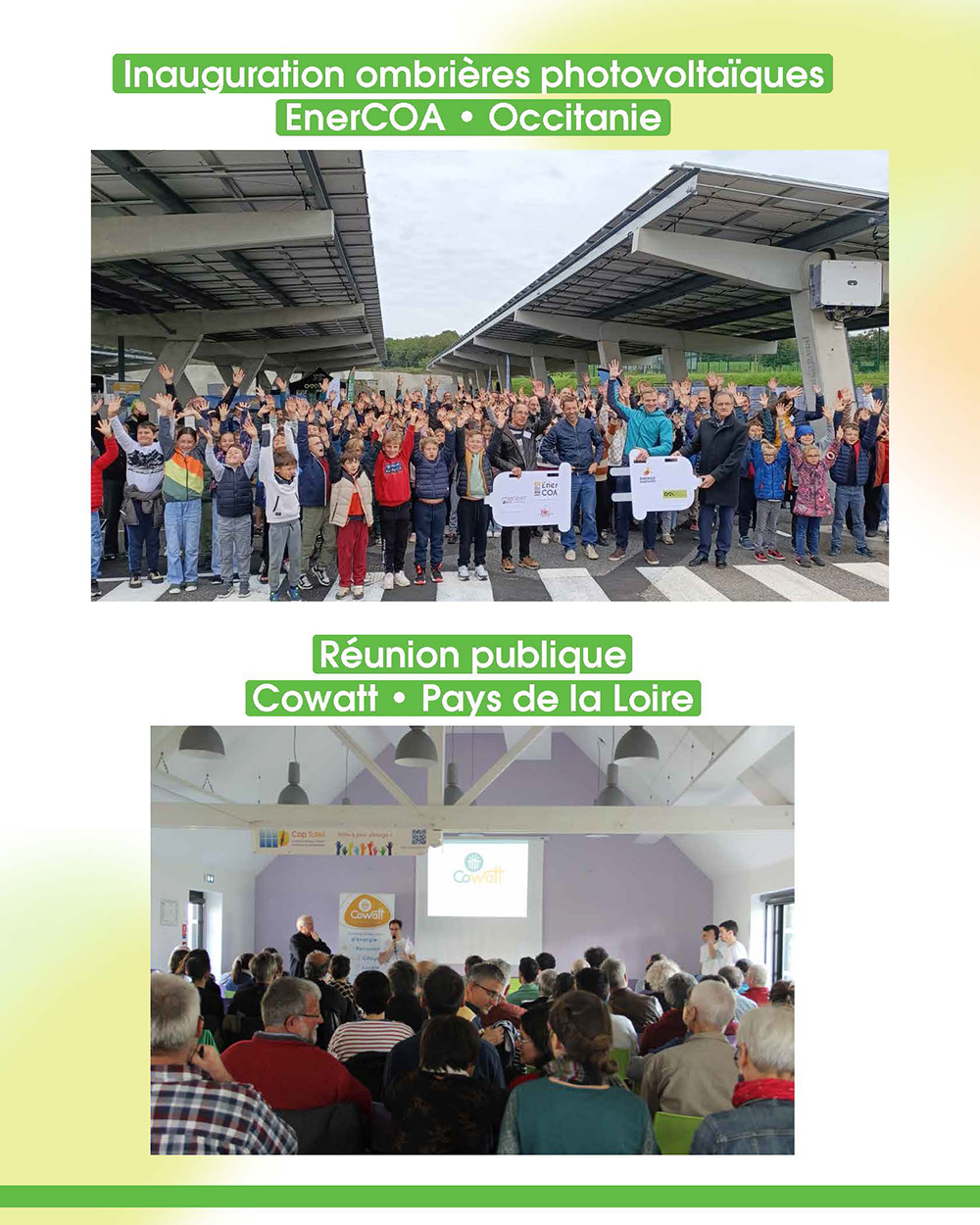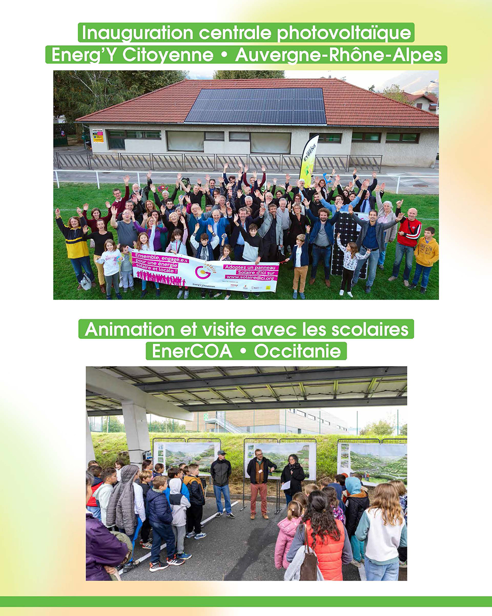 Ces collectifs ne se contentent pas de paroles : ils passent à l’action. Partout en France, ils installent des panneaux solaires sur les toitures d’écoles et de mairies, équipent les parkings d’ombrières photovoltaïques, développent des parcs éoliens à taille humaine, restaurent d’anciens moulins et barrages hydroélectriques, ou encore montent des réseaux de chaleur alimentés par des sources renouvelables.