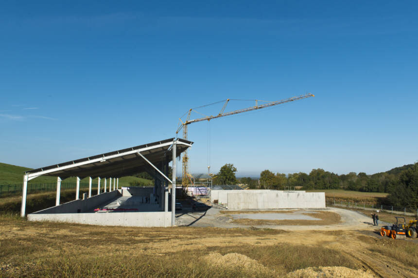 Le chantier est déjà bien avancé, ce qui permet de se rendre compte de l’ampleur de l’installation finale : le coulage du béton est terminé, comme l’est déjà aussi l’armature du toit qui va accueillir les panneaux solaires destinés à l’autoconsommation.