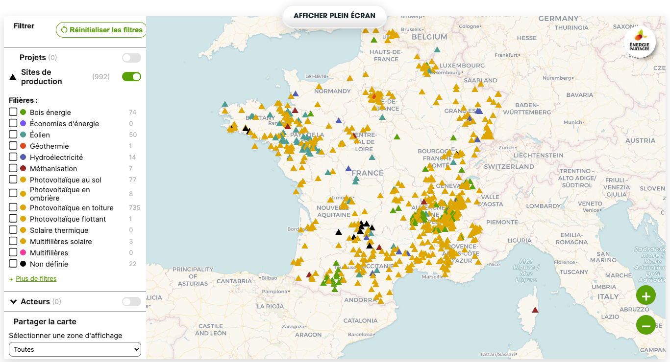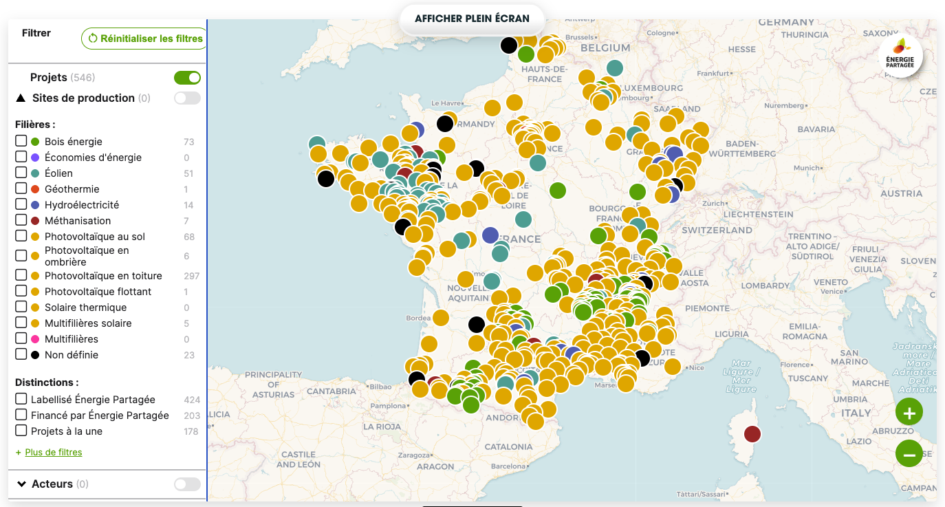 Les acteurs sont visibles en activant un des filtres de la cartographie de l’énergie citoyenne.