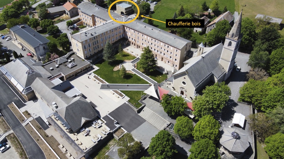 Pourtant, le projet initial va très vite évoluer. Au remplacement d’une seule chaudière va se substituer l’idée d’alimenter l’ensemble de Notre-Dame du Laus par un réseau de chaleur bois énergie. Le défi est de taille, puisqu’il faut alimenter les 6 bâtiments du site, dont 250 chambres.