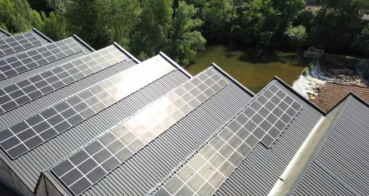 Après des travaux de nettoyage de l’usine, la première tranche des travaux est lancée : 2 000 m² de toitures sont réhabilités pour installer deux centrales d’une puissance de 100 kWc chacune (800 panneaux en tout). Mises en service en novembre 2021, elles produisent 270 MWh/an.